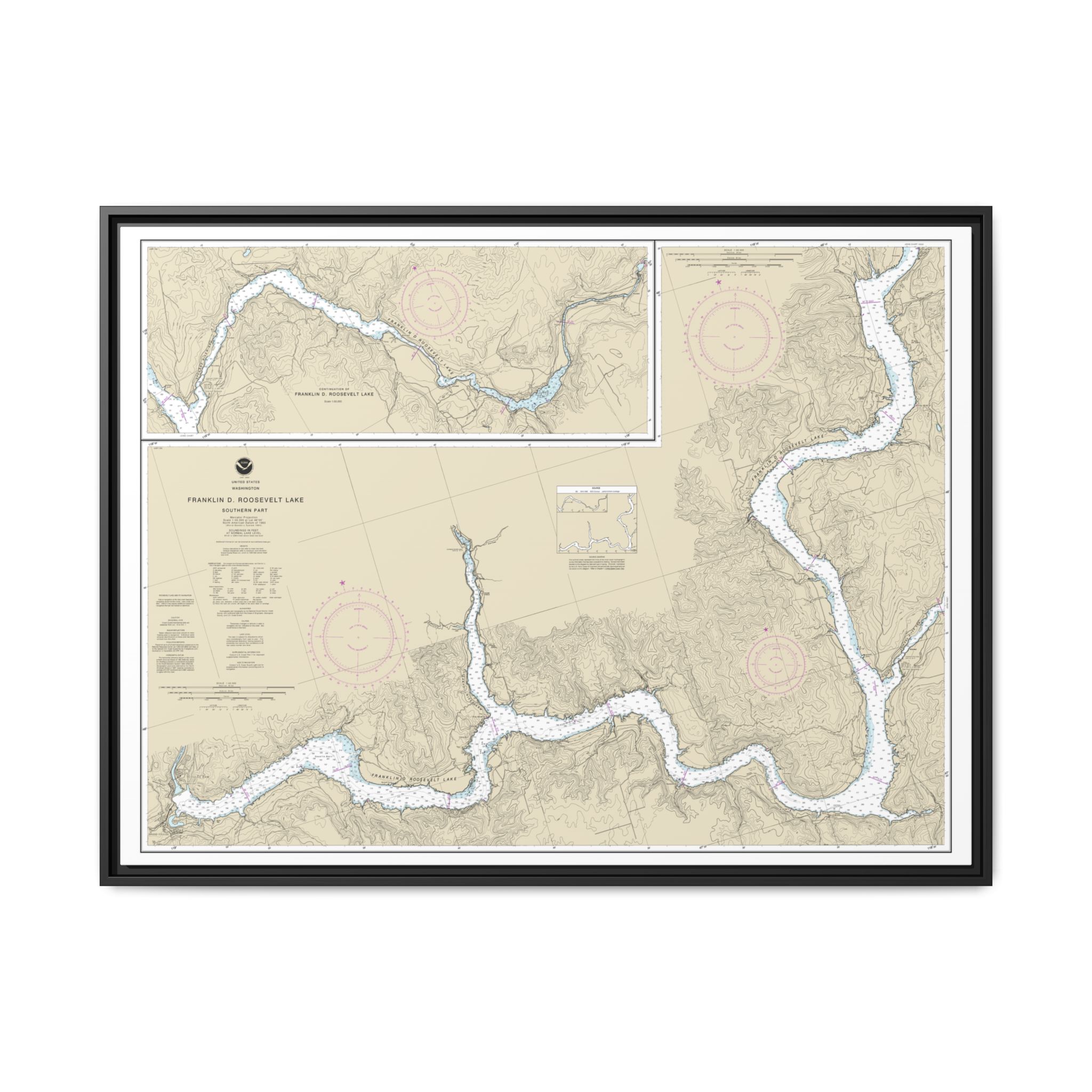 These floating frame canvas nautical chart prints are stunning, with colors that will always look as bright and crisp as the day they were made. Every frame is built with a solid face to support the canvas and prevent deforming.